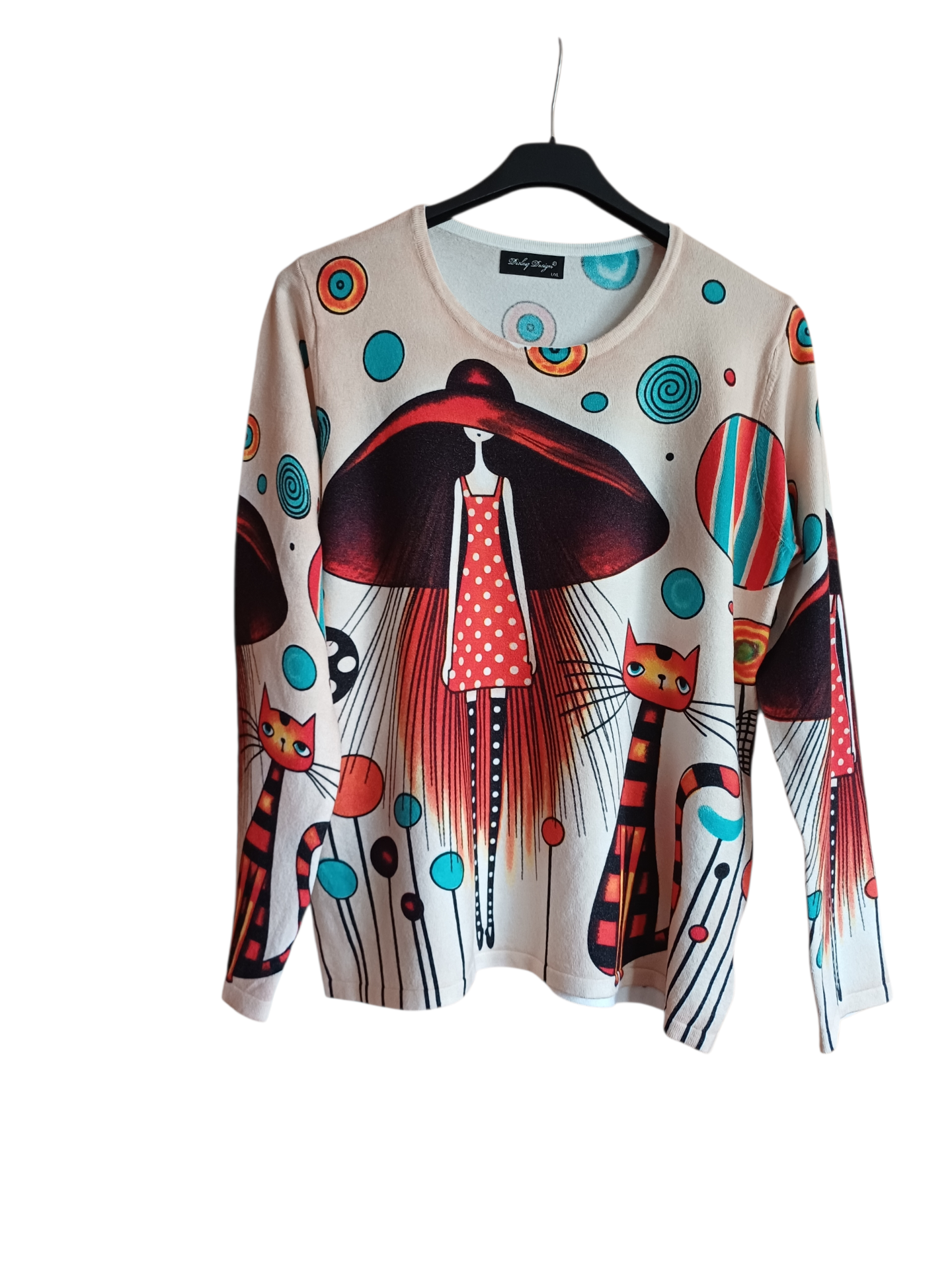 Dámský elegantní svetřík pro milovnice koček značky Dislay design ve 2 velikostechSložení: 28% polyester, 23% nylon a 49% viscóza.