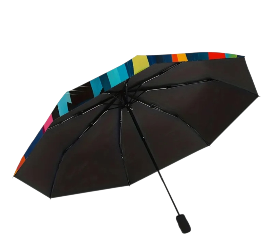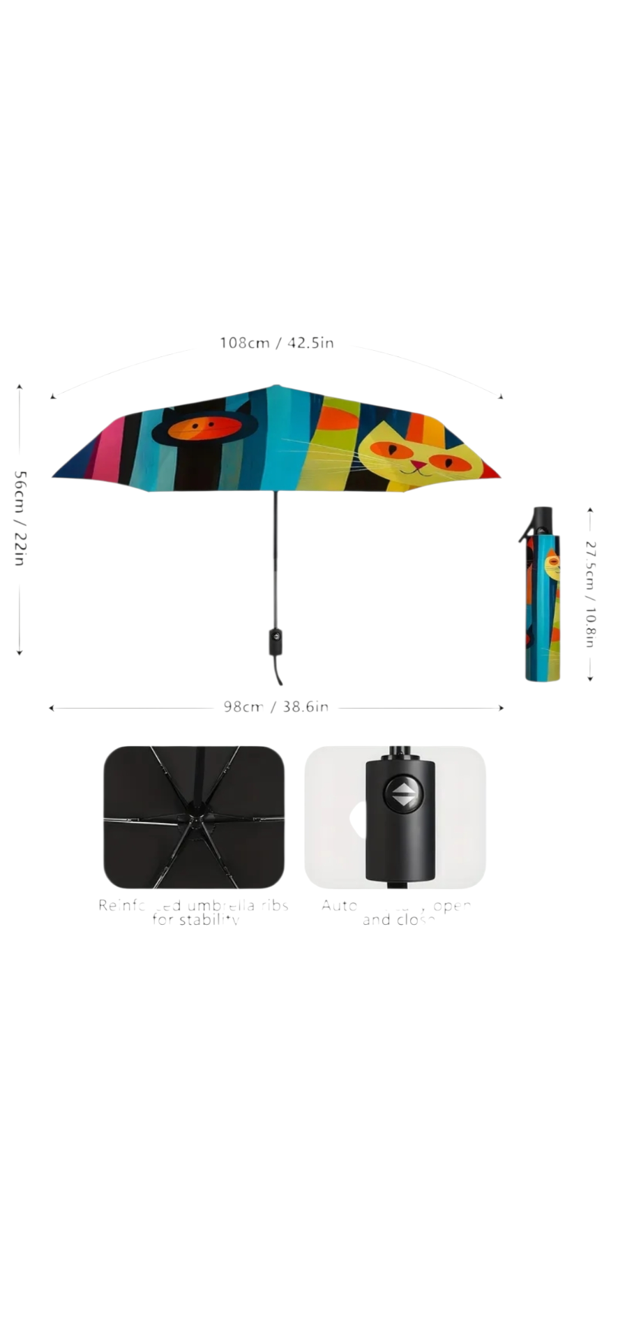 Automatický deštník s barevnými kočkami.