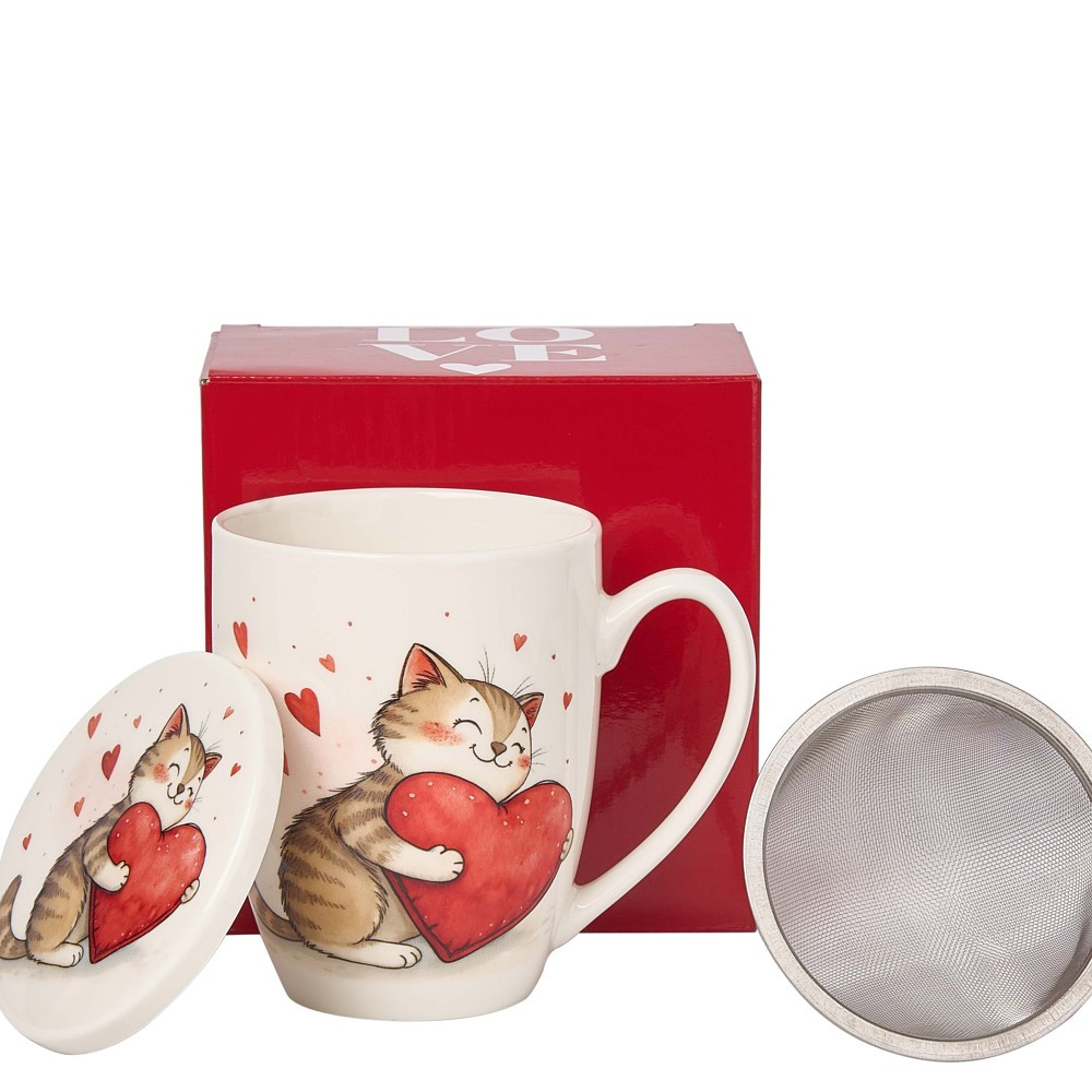 Hrnek z kvalitního porcelánu značky DUO porcelain s porcelánovým víčkem a jemným kovovým sítkem.