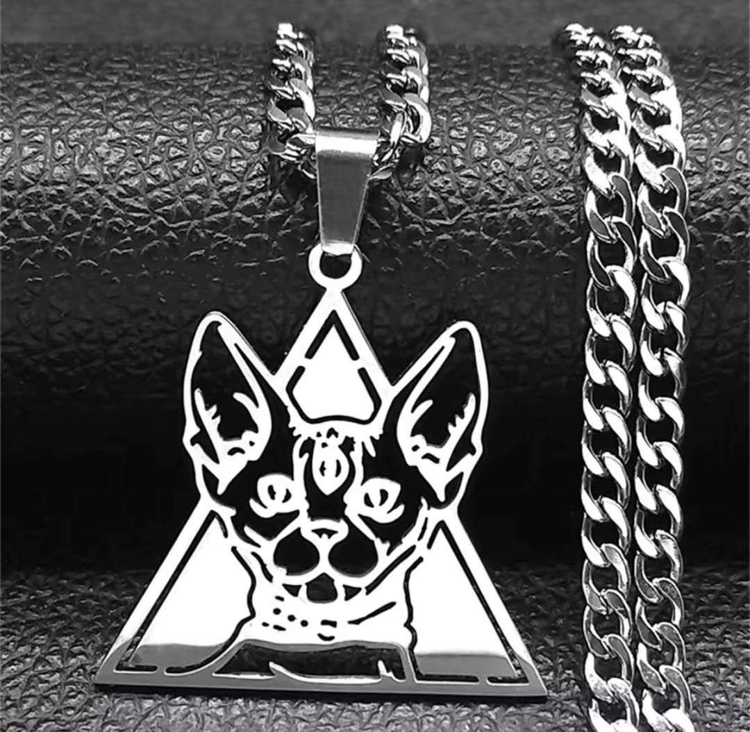 Náhrdelník s přívěskem z chirurgické oceli, kočka Sfinx