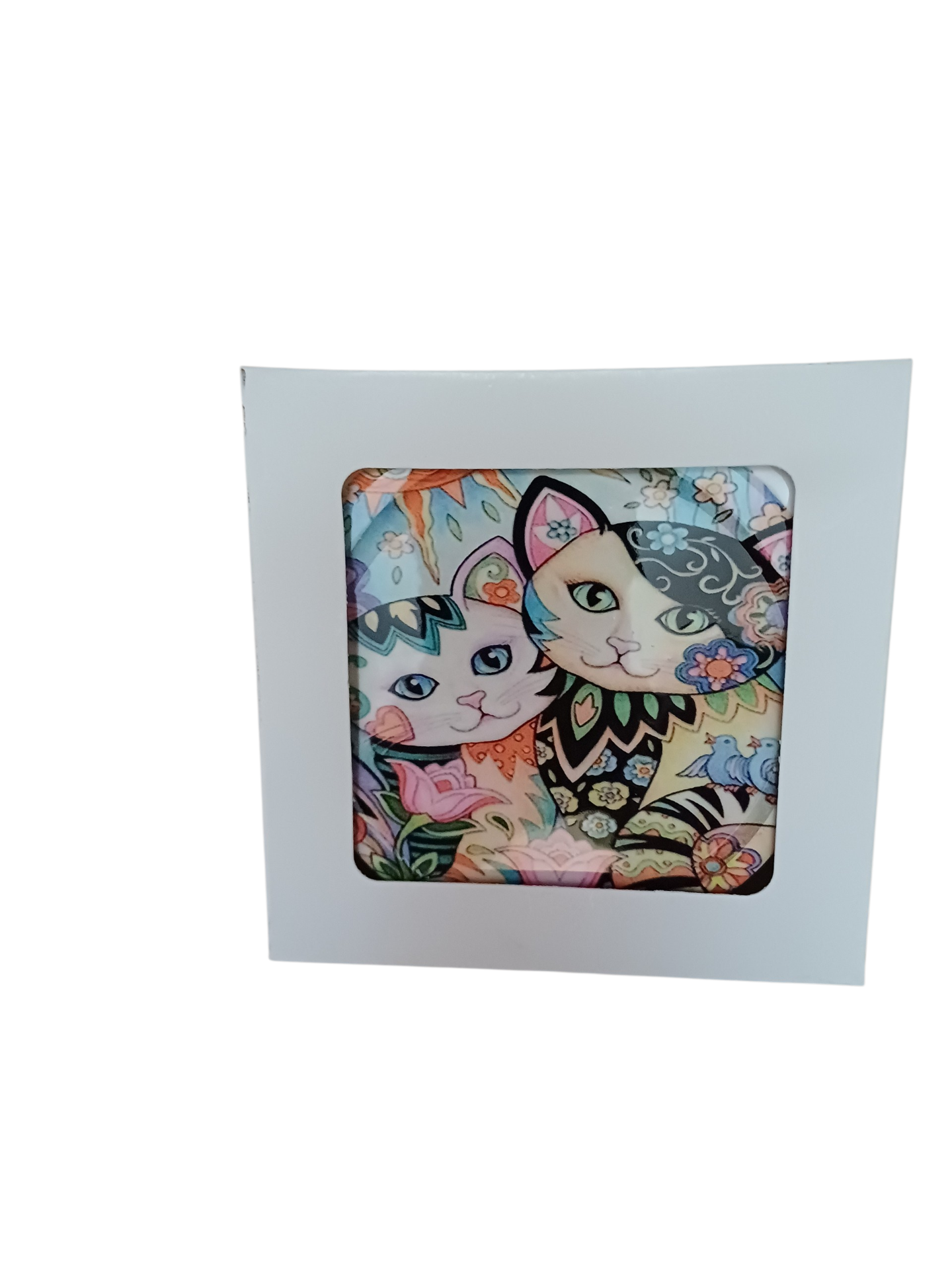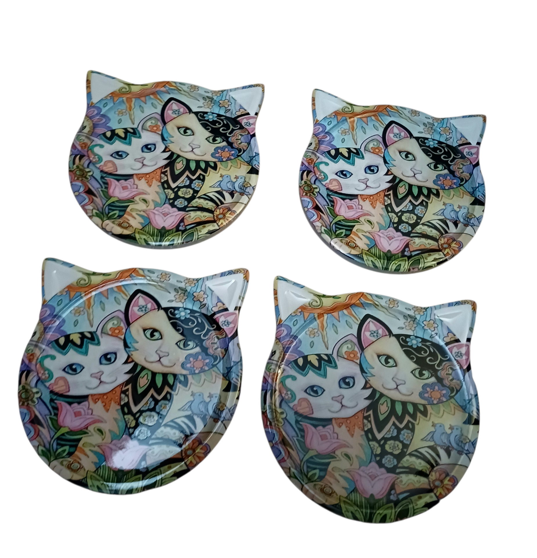 Porcelánové podtácky s veselým kočičím dekorwm. Ze spodu korek.