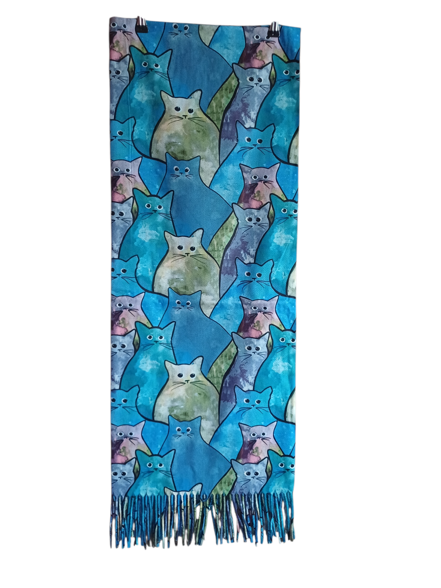 Rozměry; šíře 70 cm, délka bez třásní 180 cm .