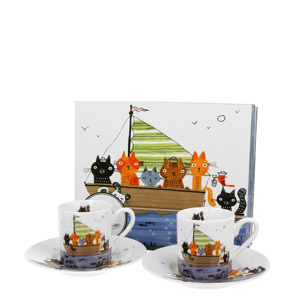 Šálek s podšálkem 90 ml na espresso - Kočičí posádka - sada 2 ks